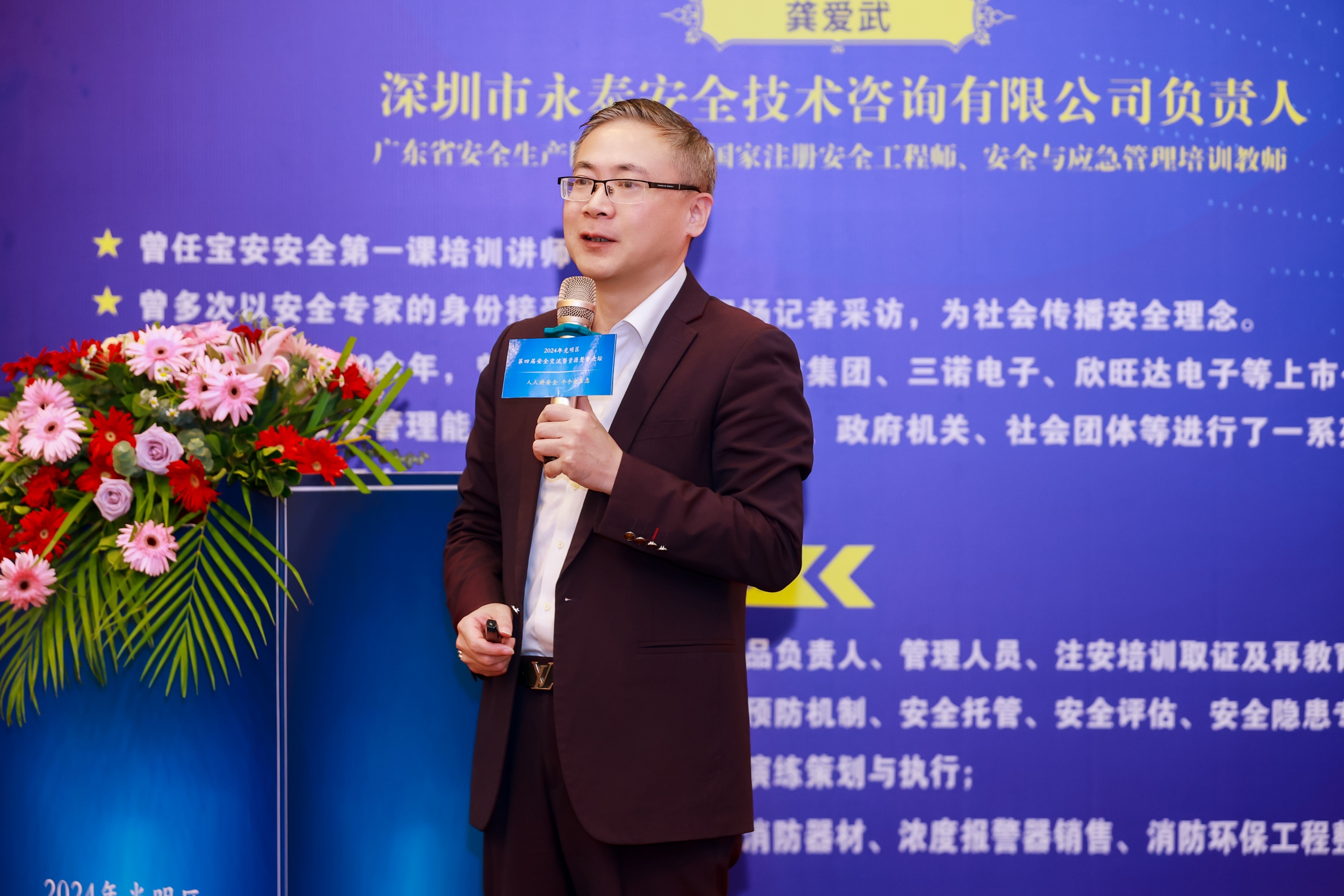 深圳市永泰安全技术咨询有限公司负责人龚爱武老师再次作为重要嘉宾,为大家带来了精彩的分享。他在演讲中指出:“新时代的企业安全管理,不仅是合规的需要,更是企业长期发展的核心竞争力。通过论坛交流,灌输“安全为天”的安全责任理念,全面提升企业安全管理水平。”